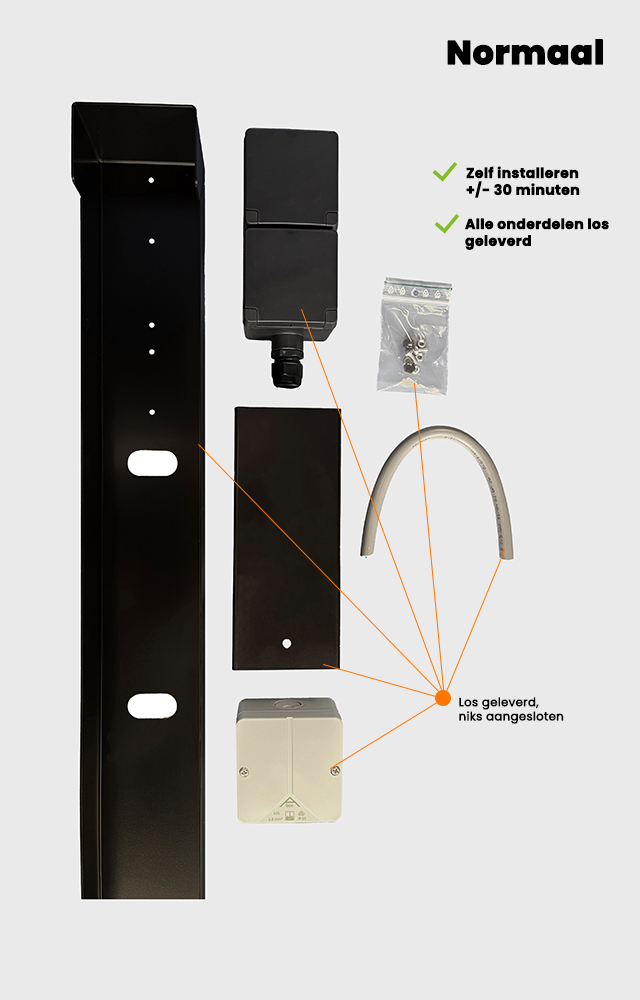 Daarom leveren wij verschillende paaltjes uit de Pro+ serie optioneel volledig voorbedraad en afgemonteerd. U herkent deze uitvoering aan het artikelnummer met de toevoeging VB.
